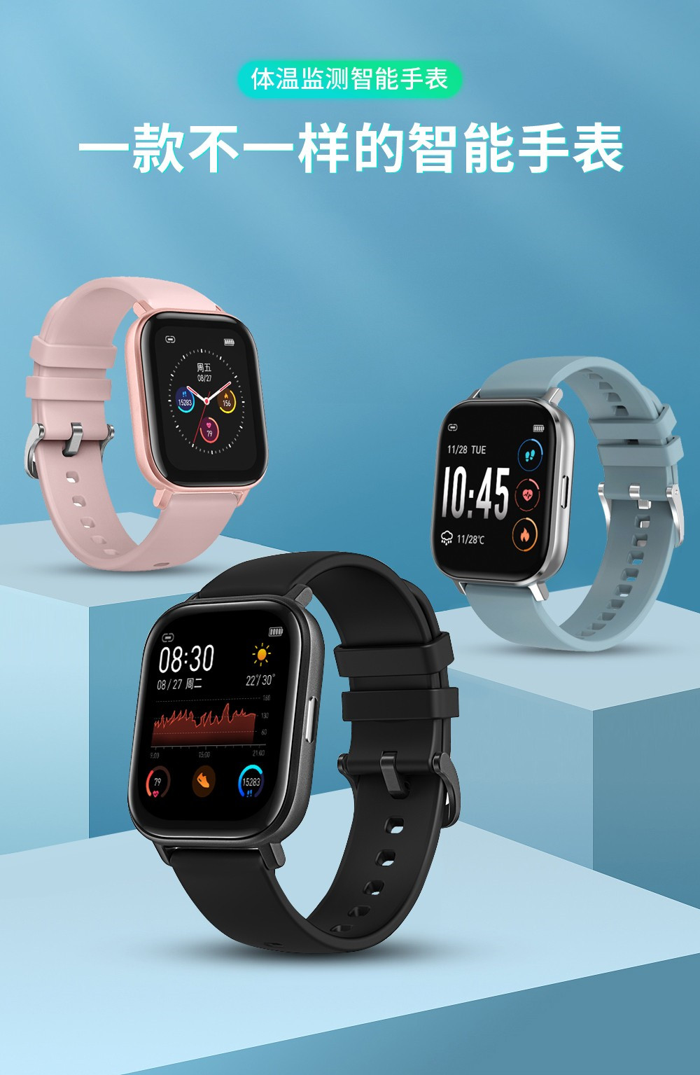 銳賽智能手表 RS-9112,通過高精熱導(dǎo)溫度傳感器以人工智能,大數(shù)據(jù)精密算法,60秒精準(zhǔn)全天候測量用戶體溫,可同步APP數(shù)據(jù)。通過PPG光電可晝夜不休檢測你的心率,快速清楚的反應(yīng)你運動時的身體狀態(tài)。